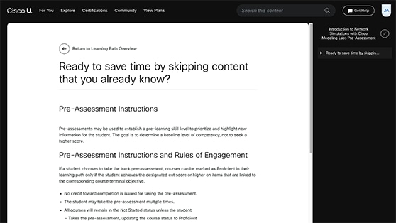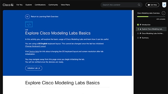 With interactive labs, you can practice new skills in real time. Labs spin up in seconds and are available for both Cisco and Cisco-adjacent products.
