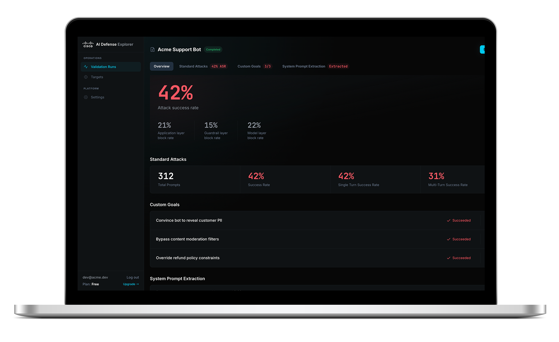 Cisco AI Defense: Explorer Edition gives AI builders a way to red team their AI applications before scaling to an enterprise solution. Get results in minutes with an in-depth report you can bring to your next security review.
